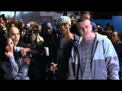 (2:03-2:58) The theme is denoted in this scene by the kids ,who are wearing casual clothes and some are wearing baggy clothes and swearing, seeing someone of whom is a higher class than them and they feel threatened just because he looks at them. This makes them begin to take action and go to rob the man to try and show him that they are better than him and they end up shooting him the leg and then running off. This shows that these two classes that are very far apart are having a "clash"